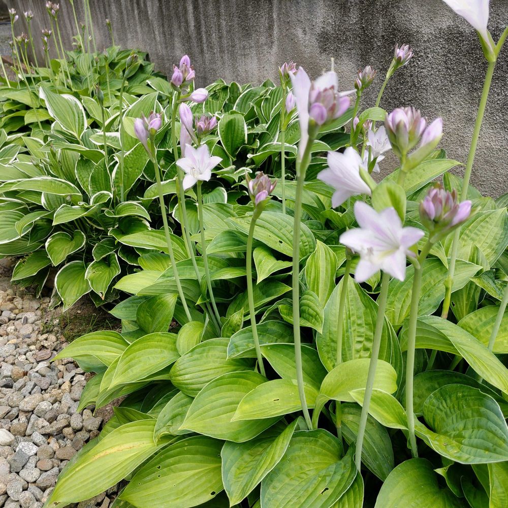 〈地道投稿〉キボウシ・ポスタ二種類花壇に植えてます。満開になる前投稿します。1️⃣アップ2️⃣全体像です。