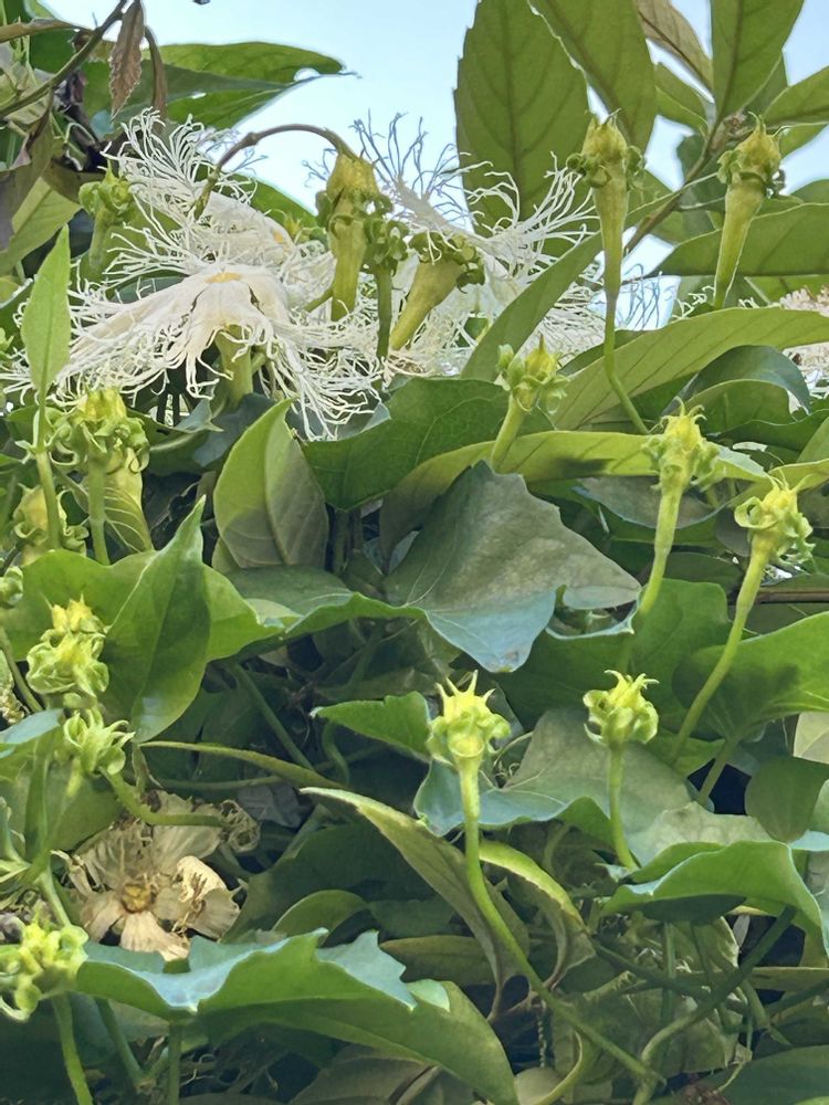 ⑤職場の高い位置に咲いたキカラスウリの花です🌸🤍