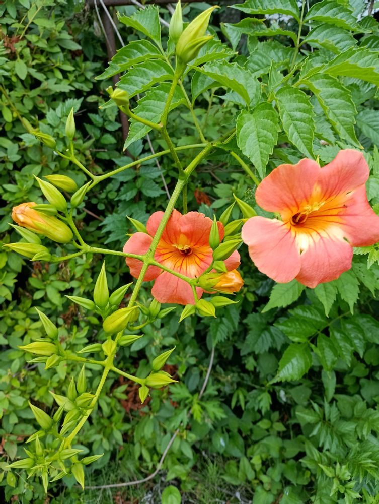 ノウゼンカズラのオレンジ色は夏らしくて👍️