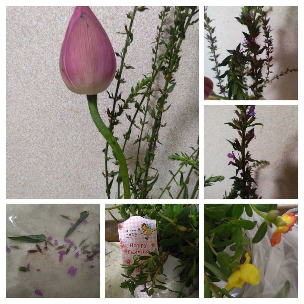 1⃣ 切り花でミソハギ💜と蓮の花💗 数本限定の蓮の花、買わずにいられない🥰 蓮池迄行かずに姿を見られるかしら?