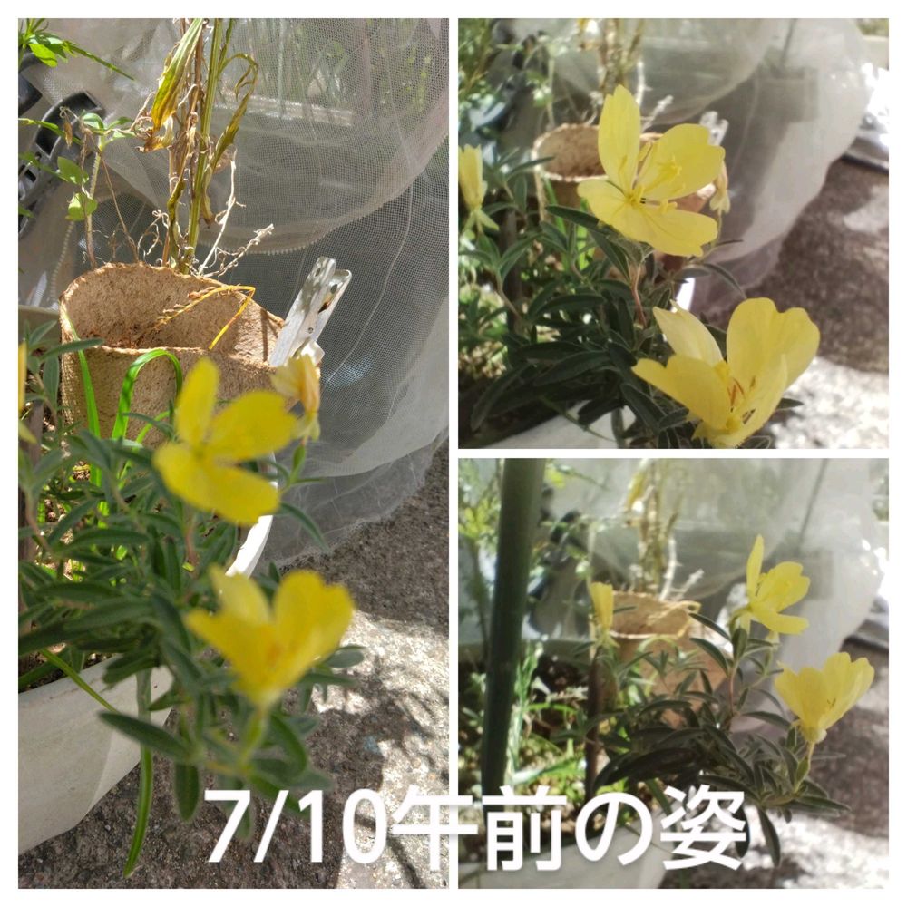 月見草エノテラアフリカンサン?か、以前頂いた苗から開花して採取したエノテラレモンドロップの種まきからのが育ったのか?