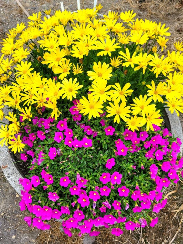 全体がこんもりとなる想定で植えましたがミリオンベルイエローだけが成長ゆっくりです🤭