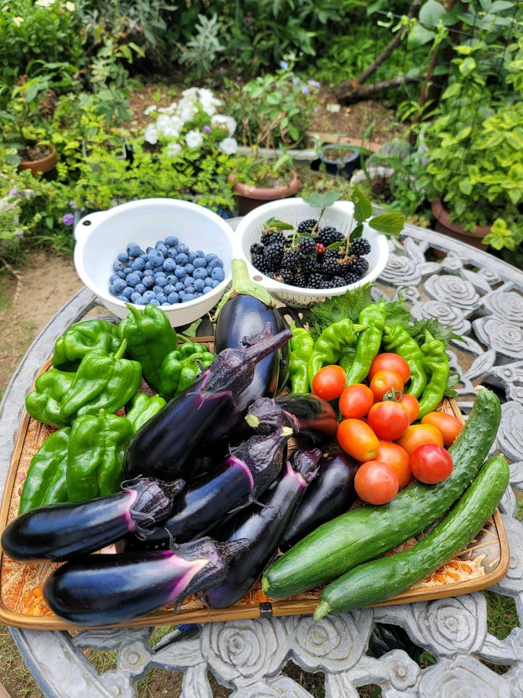 ❇今日の収穫です🖤🫐🥒🍆🍅🫑🌶️🌿