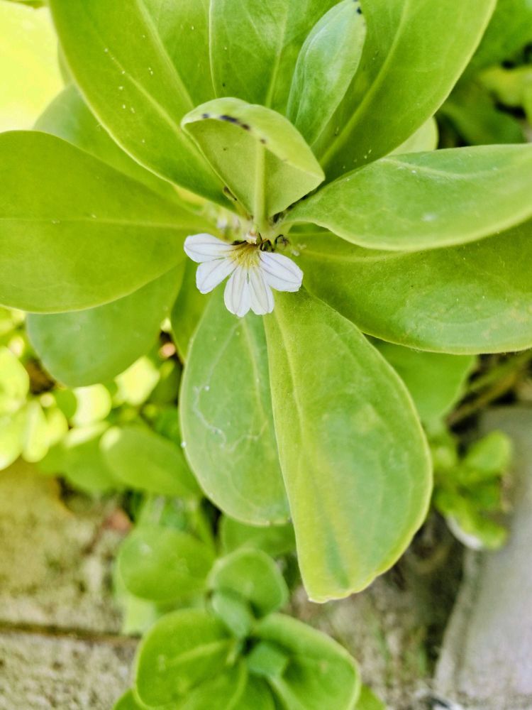 (海のナウパカ)は、半円形で幅広の花弁を持ち、白い実をつける灌木です。塩害に強く、たいていは砂防用として植えられます。熟した白色の果実(1cmほど)から採れる果汁は充血時の目薬として用いたり、髪を洗ったあとの香料として用いました。