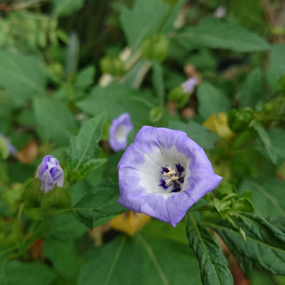 今日の花は無いと、思ってたら、なんと黒ホウズキがありました〜朝はお花開いて無かったけど、帰って来たら咲いてたので〜投稿しました😁💜✨実が出来てから種になってます💚🤎