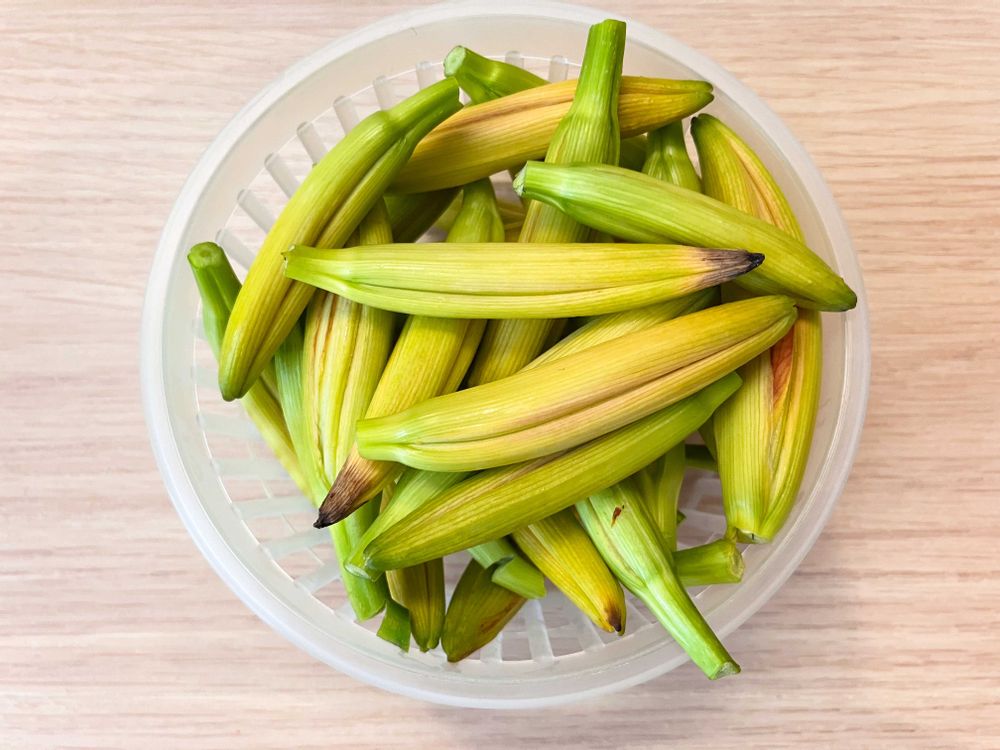 貧血さんの味方になってくださるヤブカンゾウさんは涼性でクール系の食材さんサッと茹でてサラダにお迎えするよ
