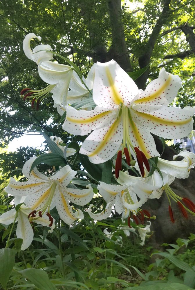 ①②③ 近くの雑木林を通ると、ちょうどヤマユリが見事に咲いていました🌱