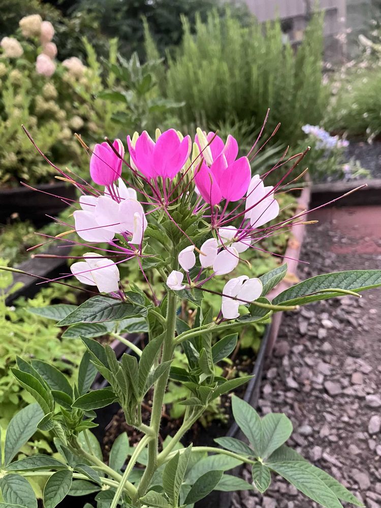 クレオメ(セイヨウフウチョウソウ)が1輪咲き出しました