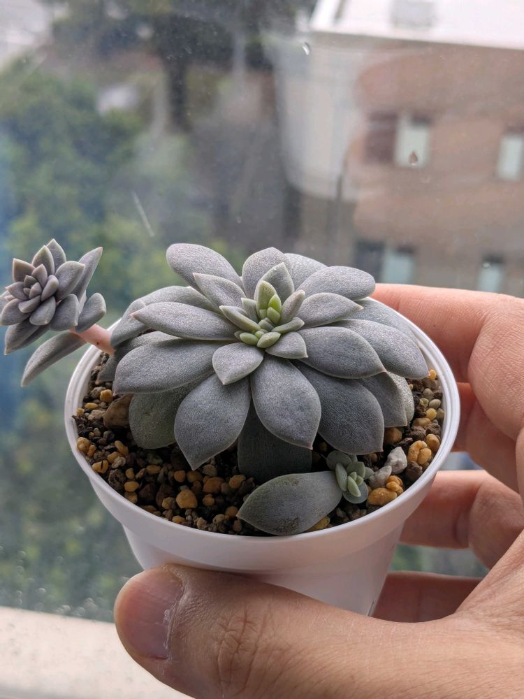和名は銀明色だそうです。銀武源の片親と聞きました。葉挿しもでやすく繁殖力旺盛です👍ただいかんせん地味です🤣紅葉すると綺麗らしいのですが、例のごとく我が家では紅葉しないので😭