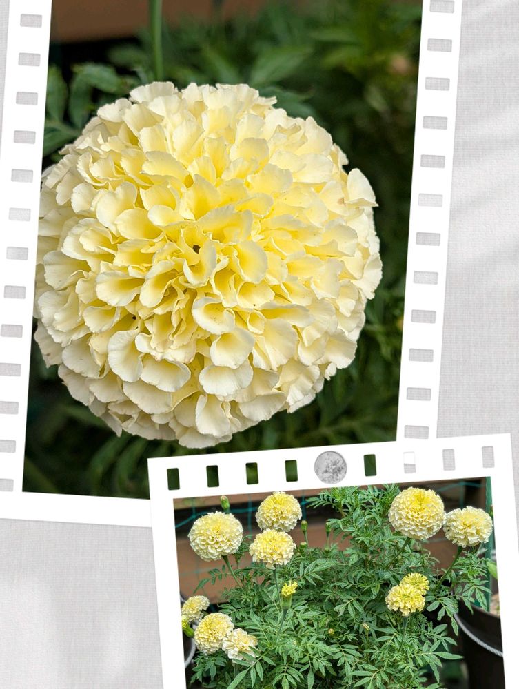 マリーゴールド,アフリカンマリーゴールド バニラ,庭の花の投稿画像
