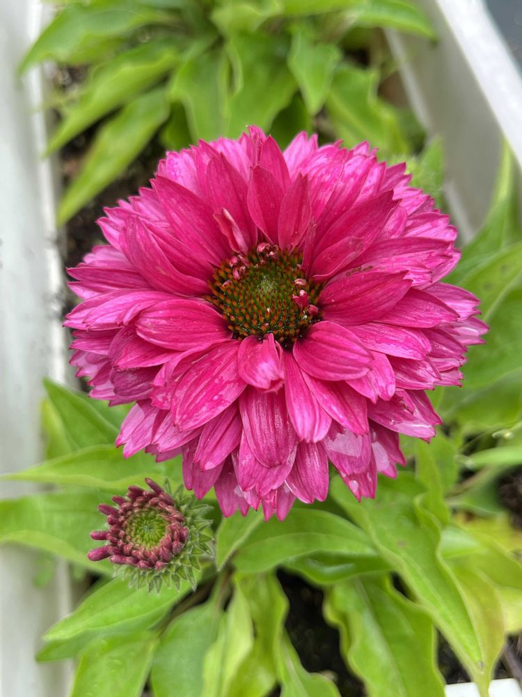 ホームセンターで意気込んで買ったピンクアイ2株、ワクワクしながら開花を待つ私。なんか違う?これエキナセア?真ん中ポッコリが無いもんっ。開花が進むと少しエキナセアっぽくなってくるかも。