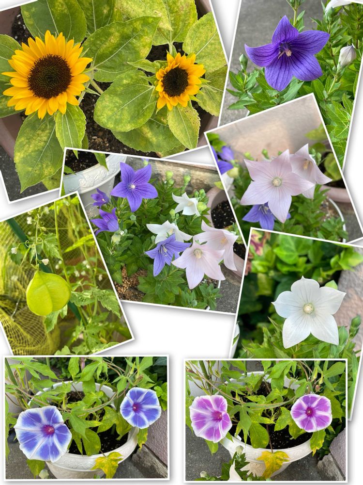 右上↗️・真ん中・右真ん中➡️ もうすぐ丸4年の キキョウ アストラちゃん(お迎えした時から3色植えで1ポット)。