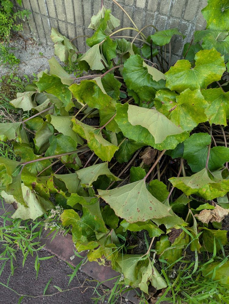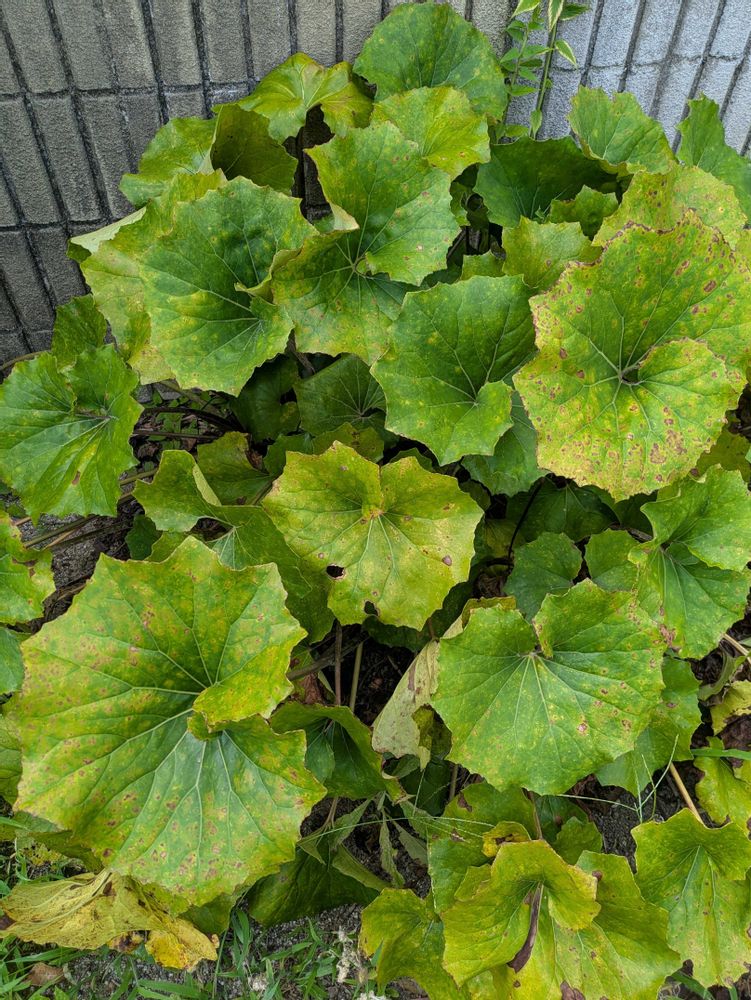 日曜日にお水が不足していた遊歩道のツワブキ🌿 色は悪いけれどちょっと元気になったようです(◍•ᴗ•◍)