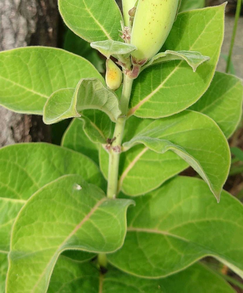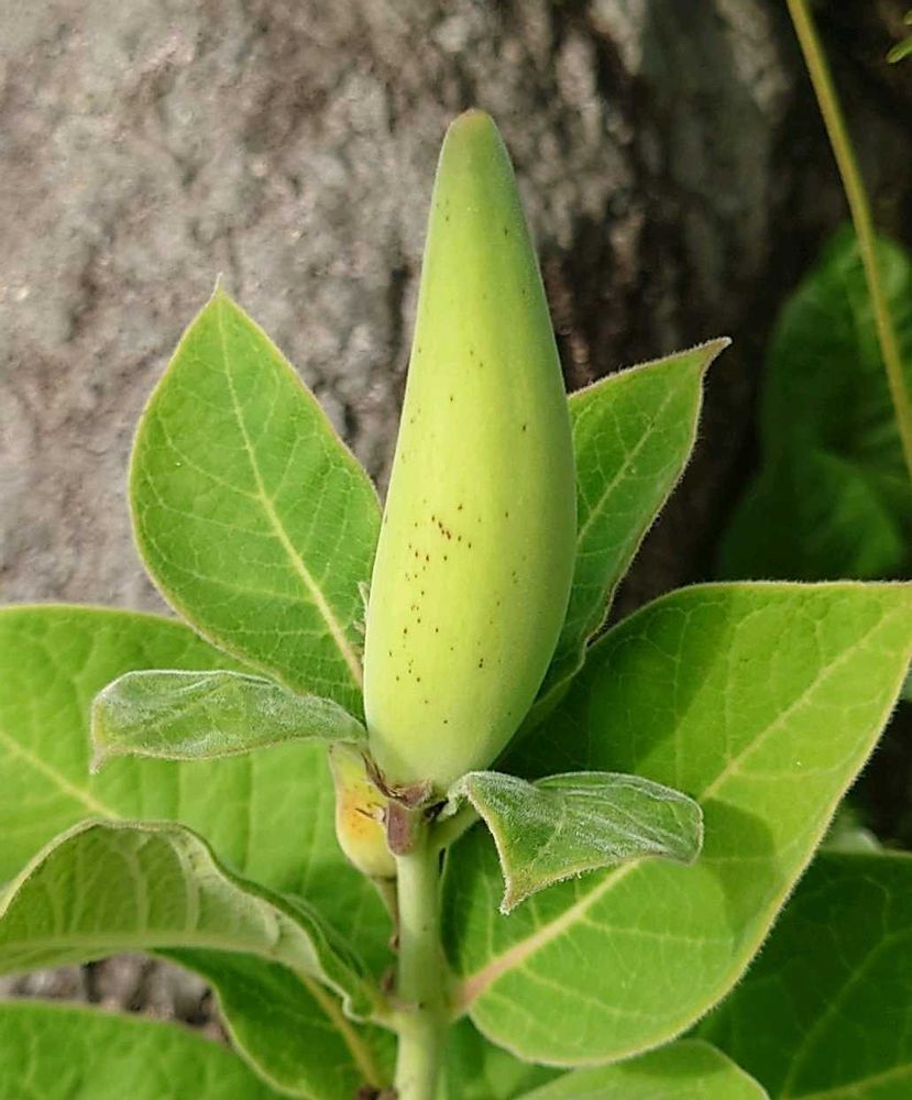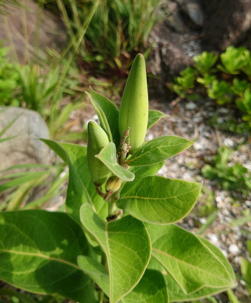 ガガイモ同様、袋果は熟すと割れ、長い絹毛(種髪シュハツ)をつけた種子が風によって散布されます