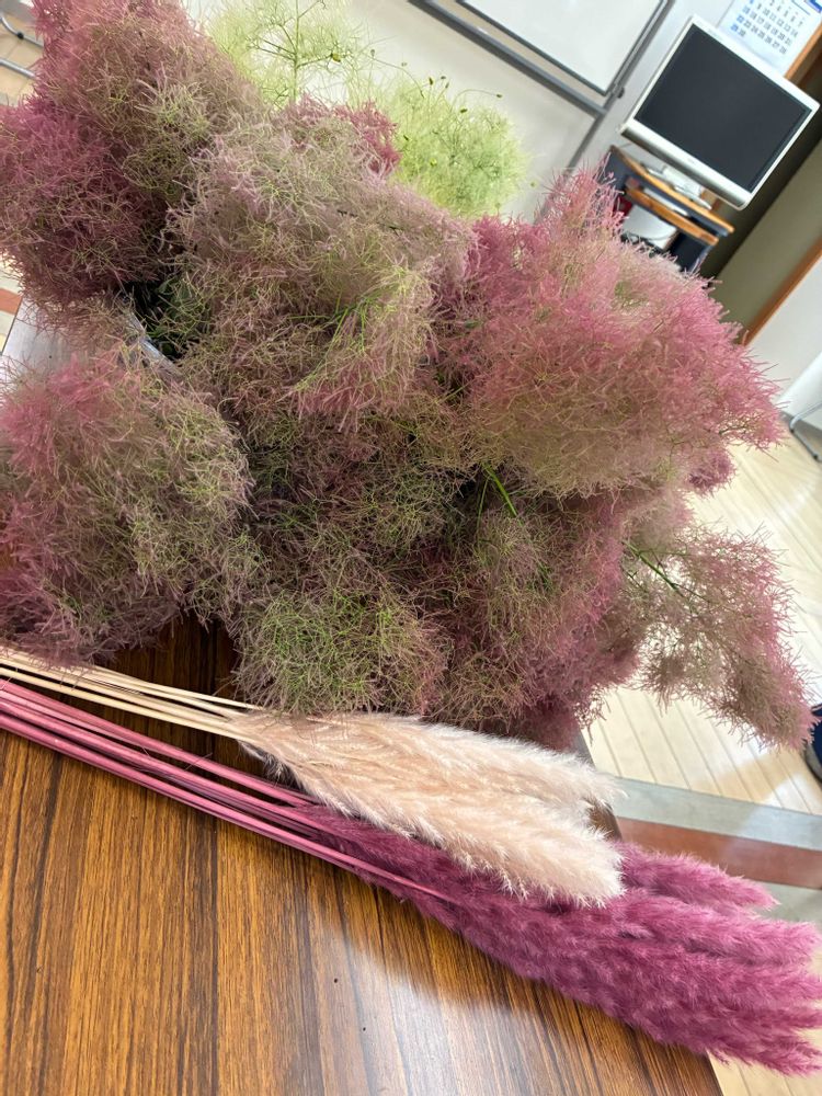 ワタのように、フワフワした雰囲気のスモークツリーだけのアレンジは珍しく、素敵な作品が出来上がって感謝でした💓
