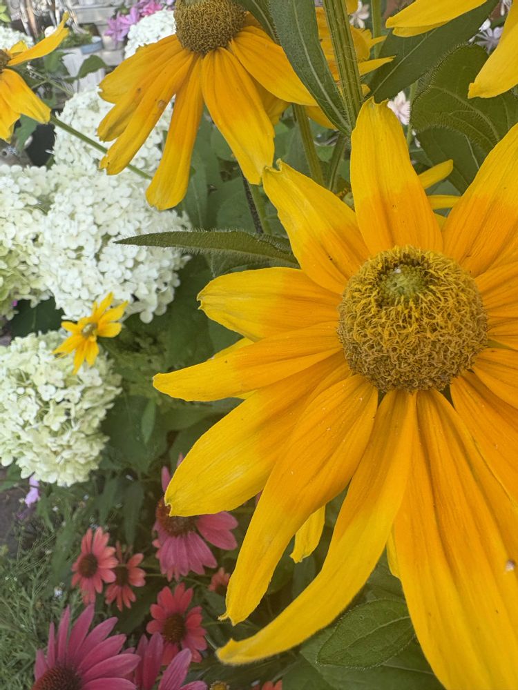 エキナセアとルドベキア、元気に咲いてますね☺️花びらも筒状なんだね😉