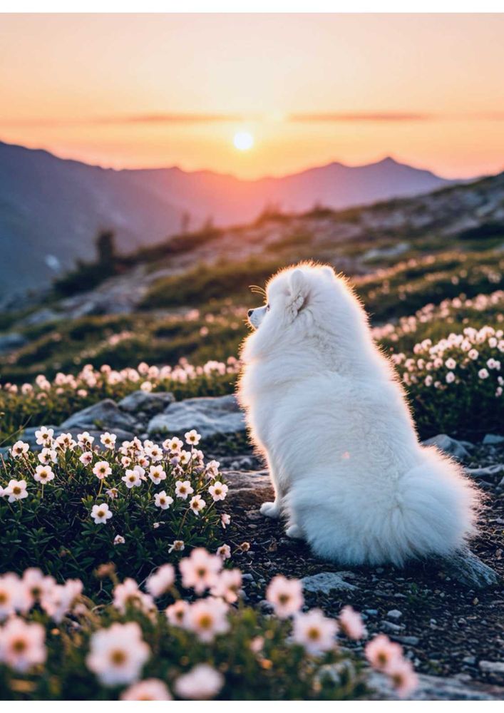 嬉しいお言葉に感謝いたします♡この子は散歩で見かけるワンちゃんをアレンジし、花畑に咲かせた幻影です😊現実の子はとても人懐っこく、本当に可愛いです💚🌱🌿🌱
