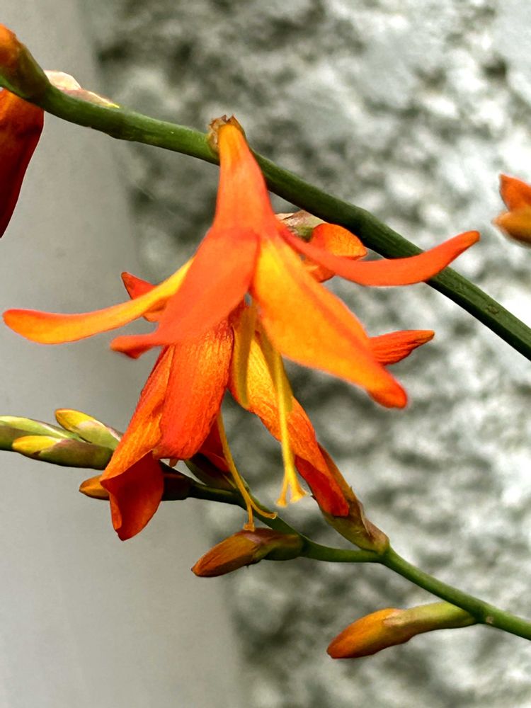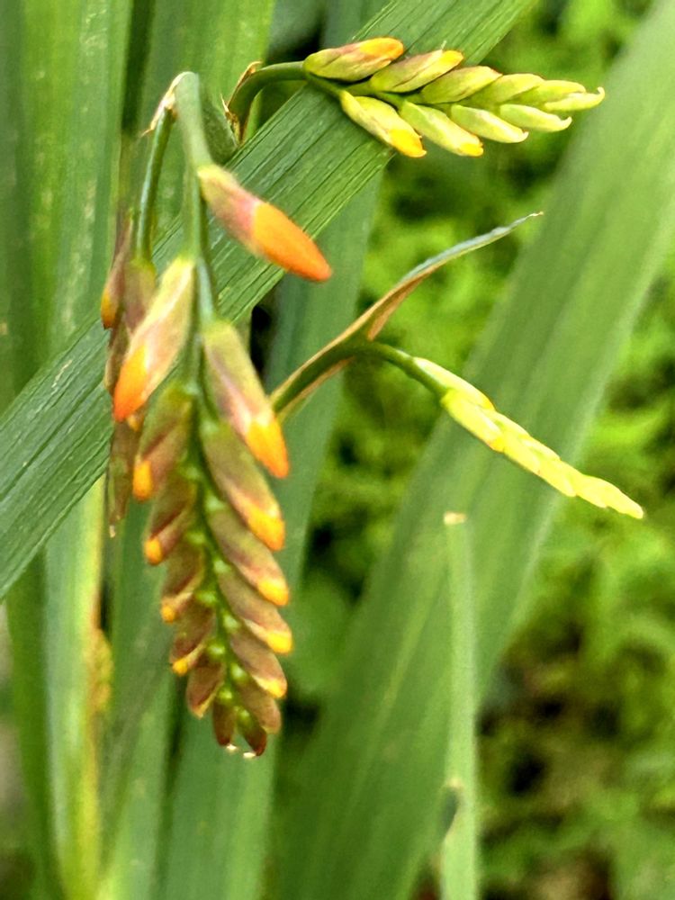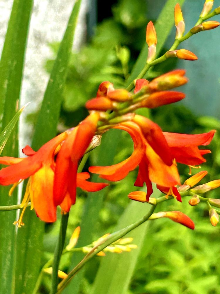 お隣りさんに去年もらったヒメヒオウギズイセンが咲いてくれました🤗猛暑に元気で夏の色ですね🌿🧡🌿