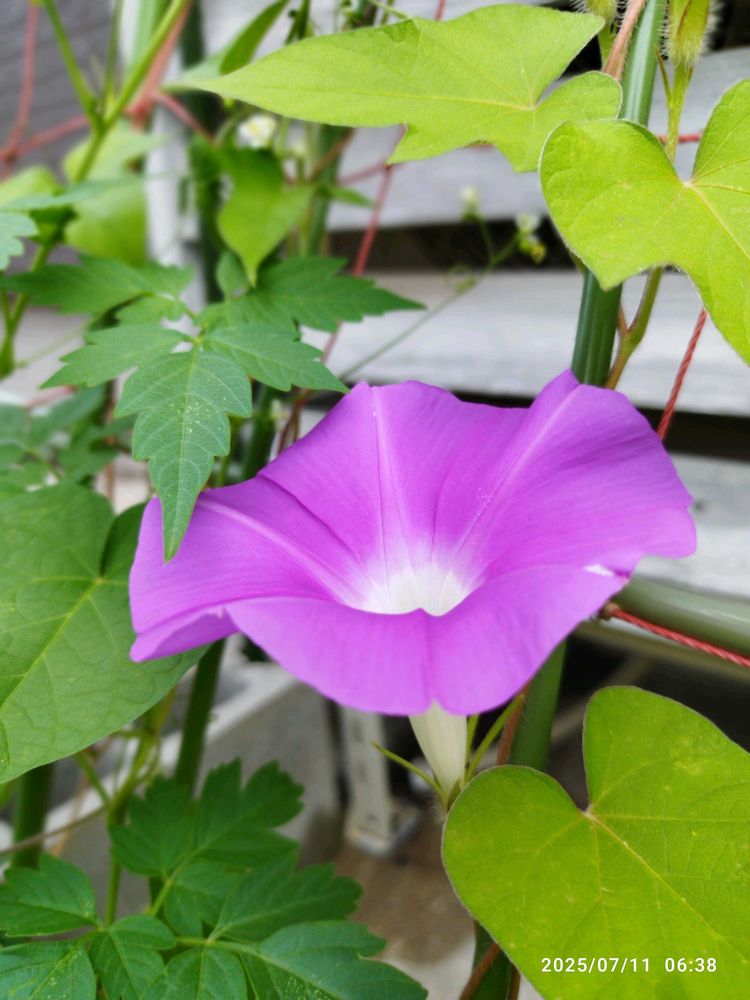 野良朝顔はあちらこちらに芽を出して絡みながらいつもより小さな花を咲かせています 暑いし雨降らないから……成長もイマイチ…… ミルキーウェイが大好きでその子の投稿したいのですが…(笑)なかなか良い写真が撮れません 朝顔は秋の季語になっているからこれから楽しめますね…(笑)