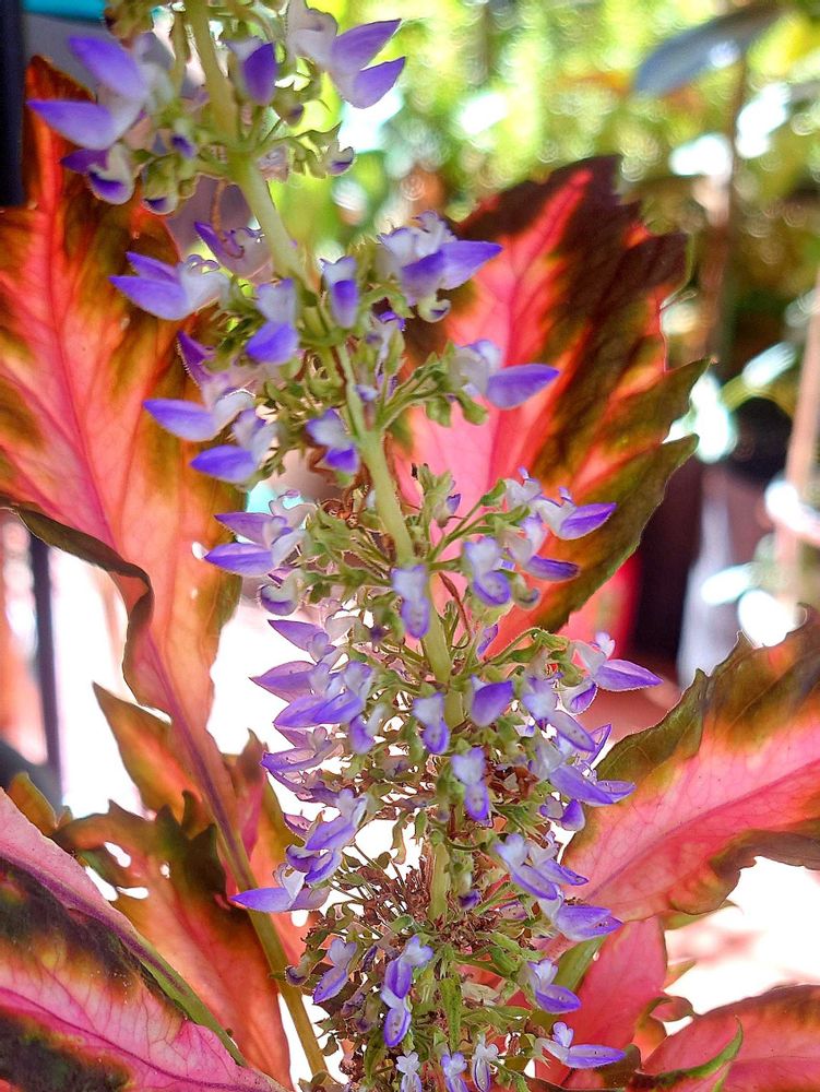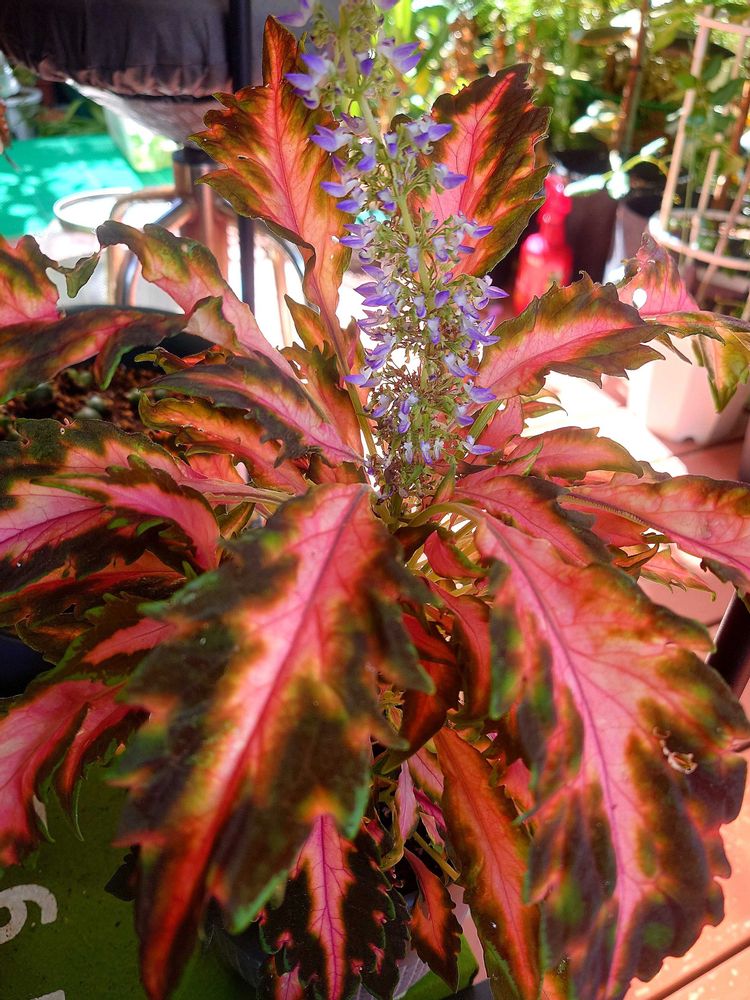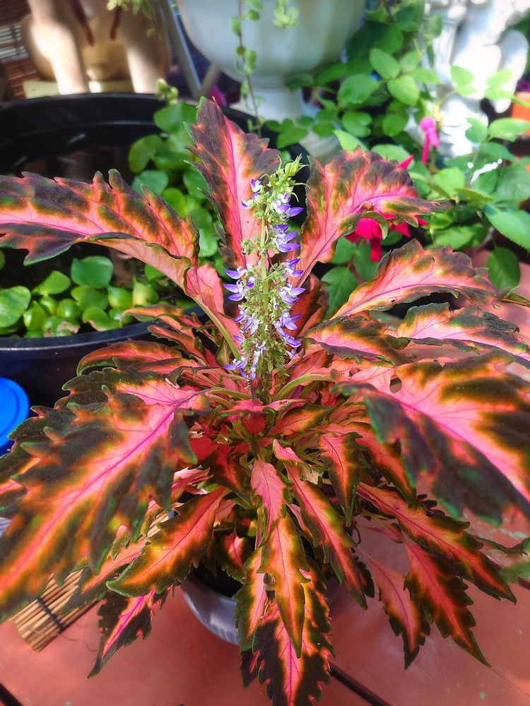 コリウスさんのお花が咲いています🎶綺麗な発色の葉を楽しむには、花芽を摘まないとですが、せっかくだからお花も楽しませてもらいます😄🩷