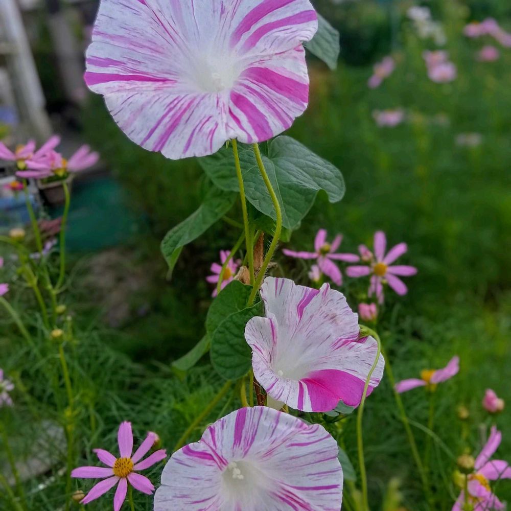 コスモスとアサガオのコラボ