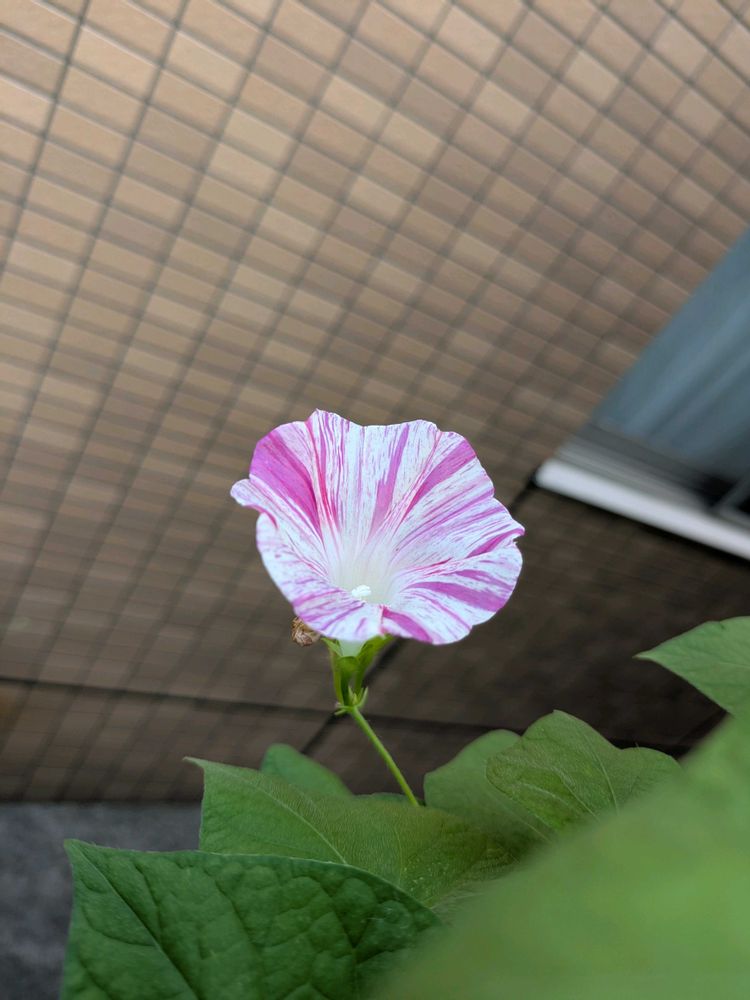 ピンクと白🩷🤍のドイツアサガオのお花の開き始めは紫と白💜🤍のようにも見えますね🤗