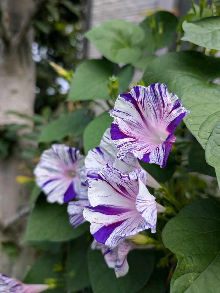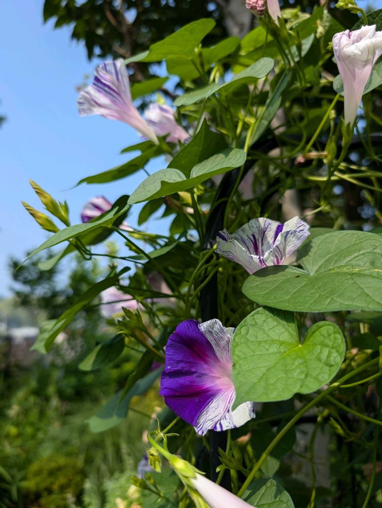 長く楽しめる風情ある朝顔ですね🤍🩷💜