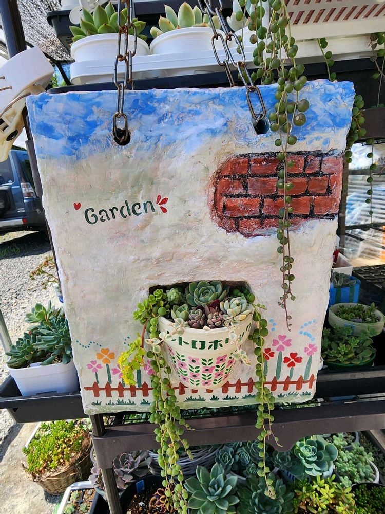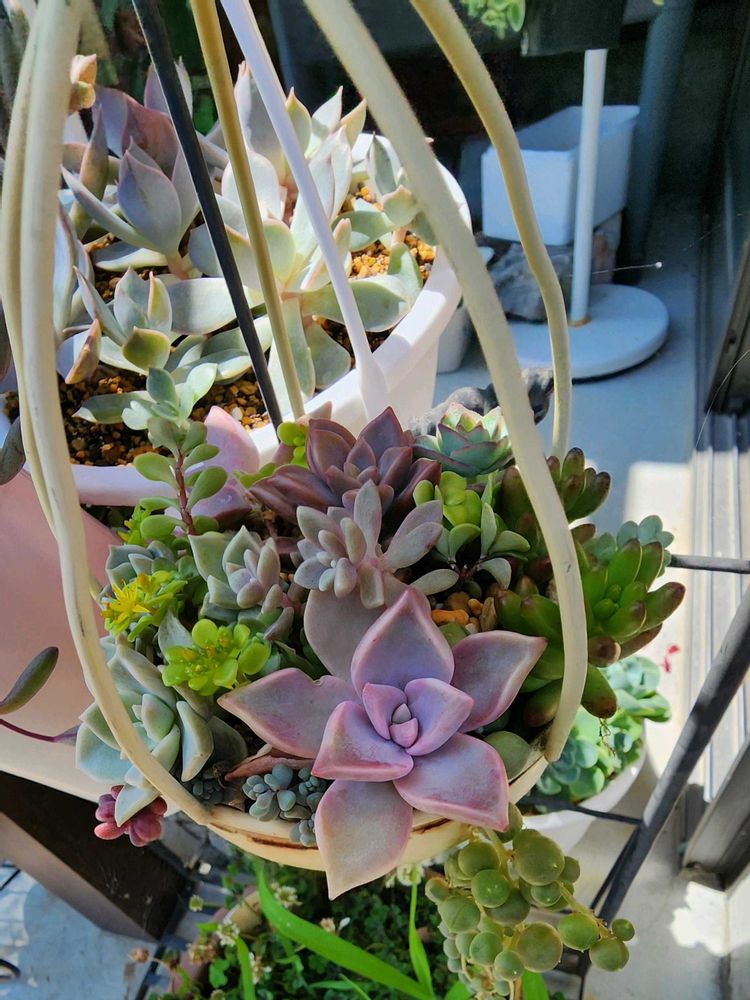 七色の虹さんの庭, 多肉寄せ植え,照明に吊り下げてみたの投稿画像
