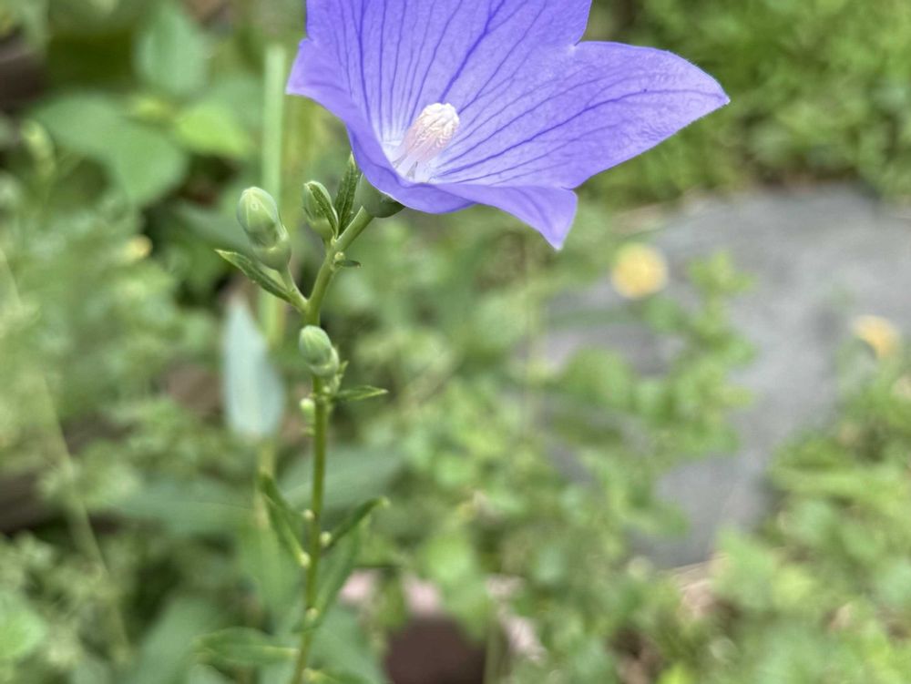 自生のキキョウの蕾が今朝開いていました。昨晩の雷雨⛈️にも負けず咲いています❣️