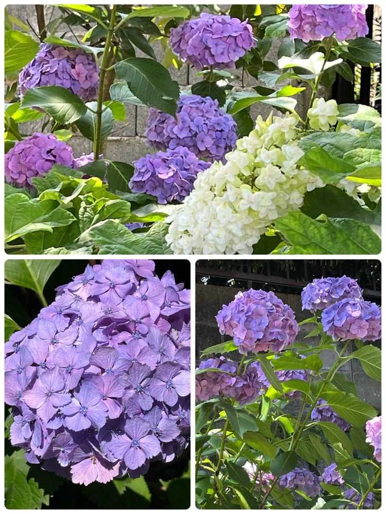 薄紫色の紫陽花と白いカシワバアジサイが綺麗です💜🤍