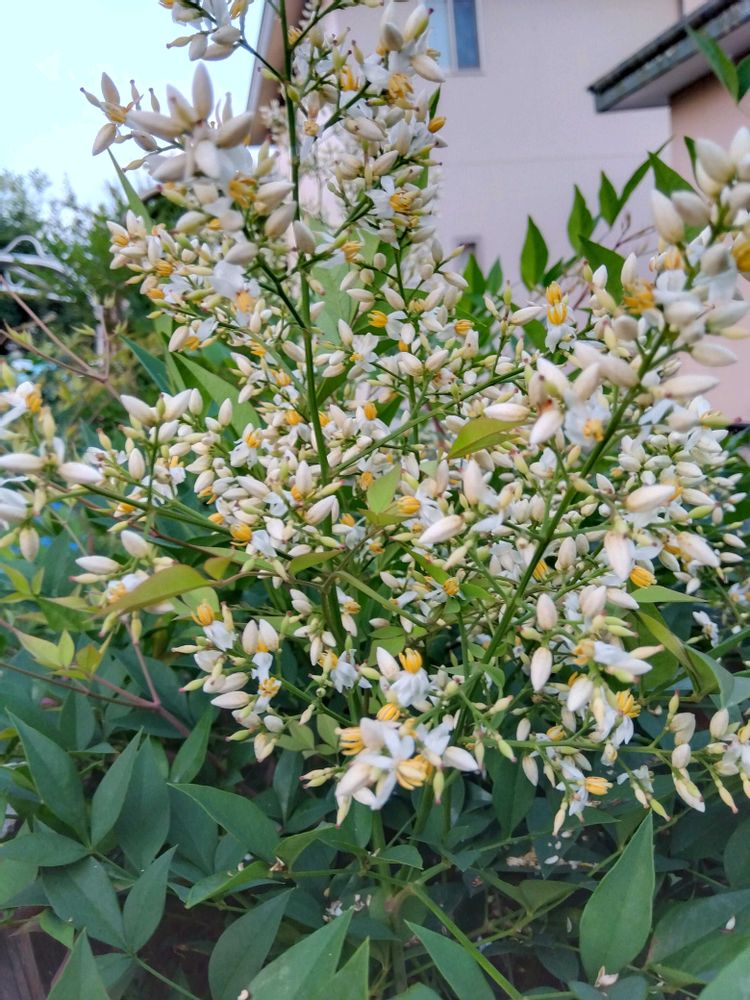 南天の花が咲いています🤗秋には赤い実がなるので楽しみです🎵