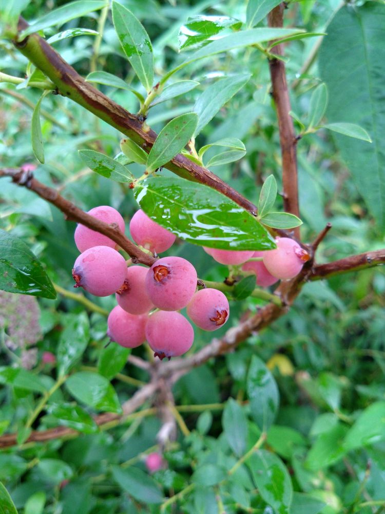 ブルーベリーやっぱりピンクって付くから、実もピンクなんですね〜初めて見ました〜お孫ちゃんも喜ぶね〜😉💕