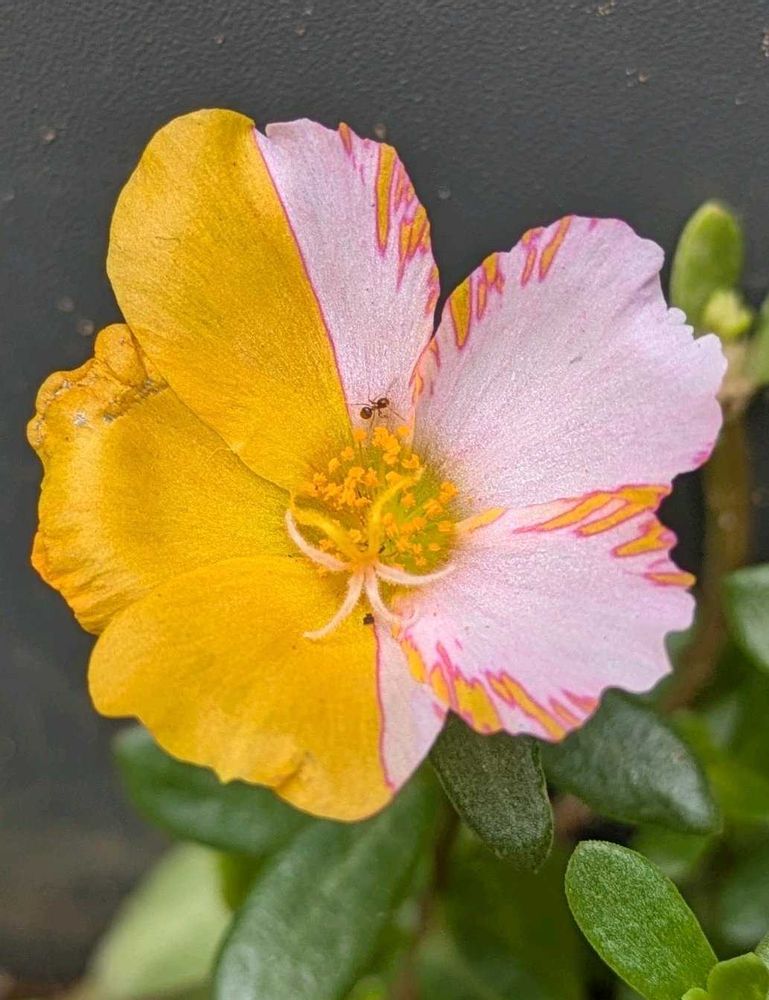 半分ずつ🩷💛のポーチュラカがあるのですね🤗あっ!アリヤ👀😁🐜拡大しないと老眼でみつけられなかったです😅