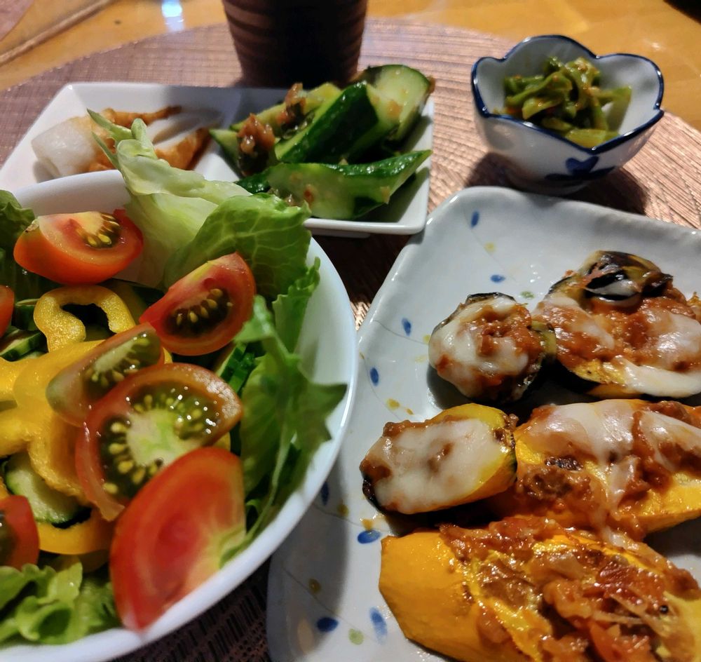 ズッキーニと茄子の、ミートソース&チーズ焼き🥒🍆🧀