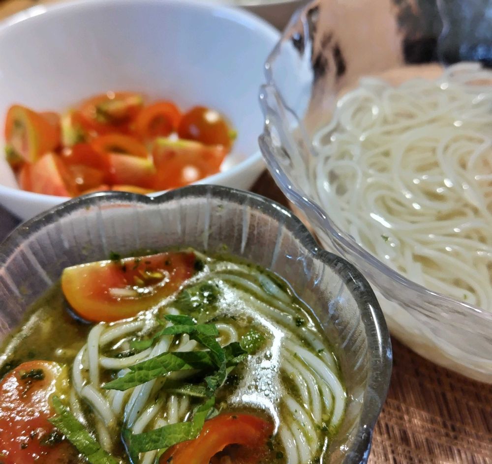 去年のトマトが冷凍してあったから、春頃に作ったものです😋