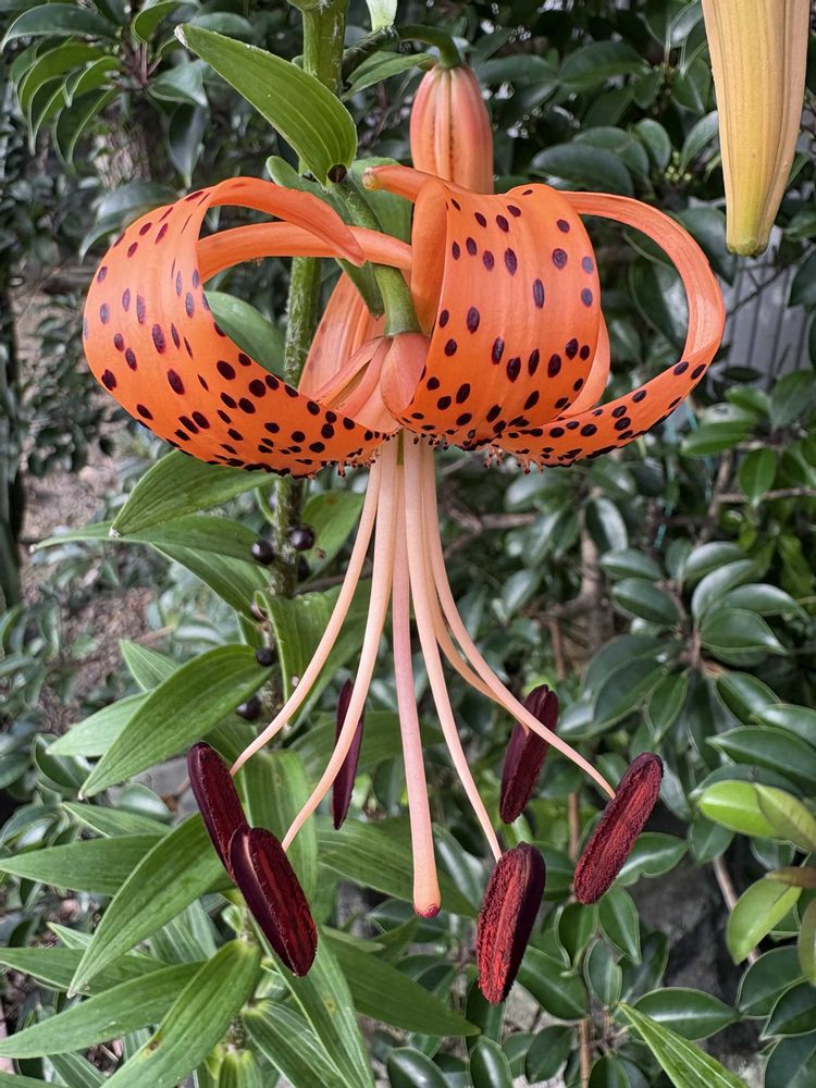 この鬼百合、私が気づかないうちに庭の仲間になっていて、数年前に多分夫がよそからもらってきた感じ〜