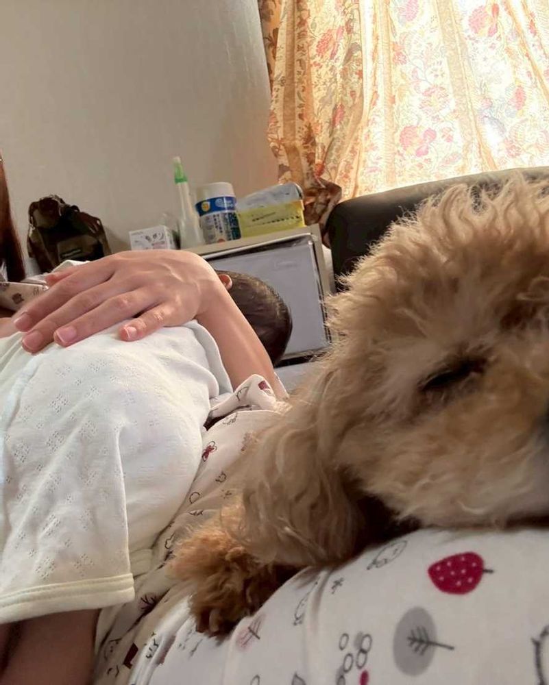 トイプードルって子供と一緒に遊べる犬種だから子守りしてくれますね💕