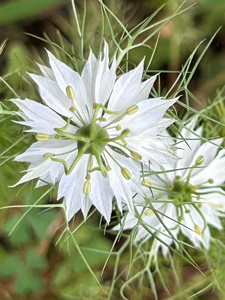 こぼれ種のニゲラが咲き始めた頃に種まきしたニゲラ💦