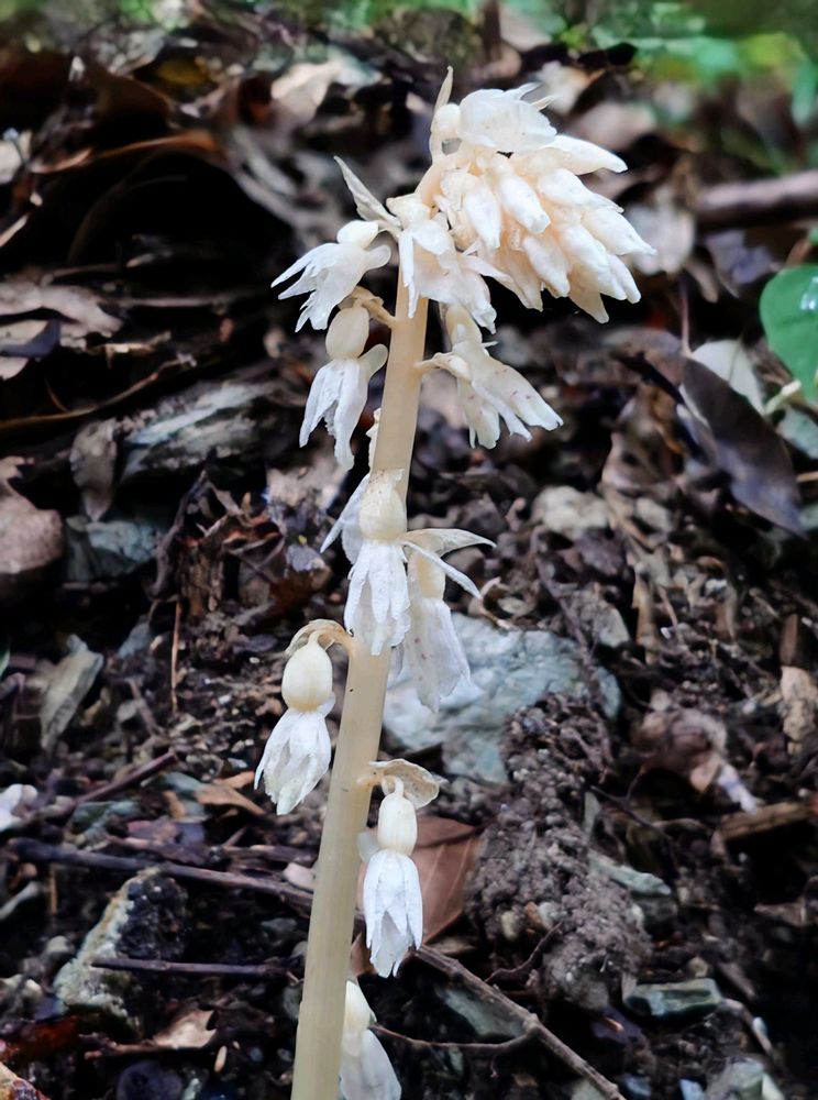 タシロランは常緑広葉樹や杉などの落ち葉に何とか菌がある場所なので、林のなかで枯葉が腐食してフカフカした所に出てましたよ🙂