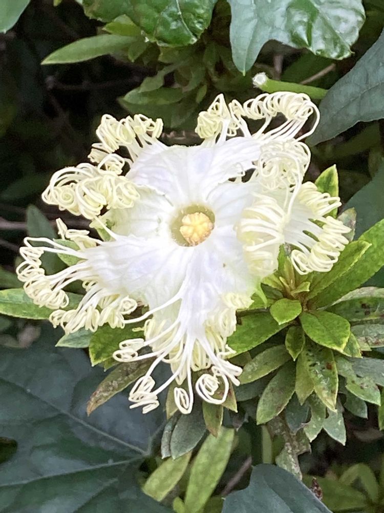 道沿いの植え込みに被るキカラスウリ。レースに成る部分が未だ伸びていなくて綺麗にカールしています。6/29夕方撮影。