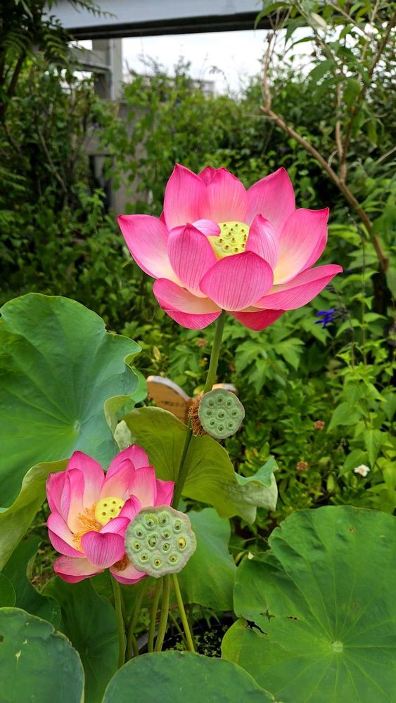 ハーブ園に、色鮮やかなハスの花が咲いていました①