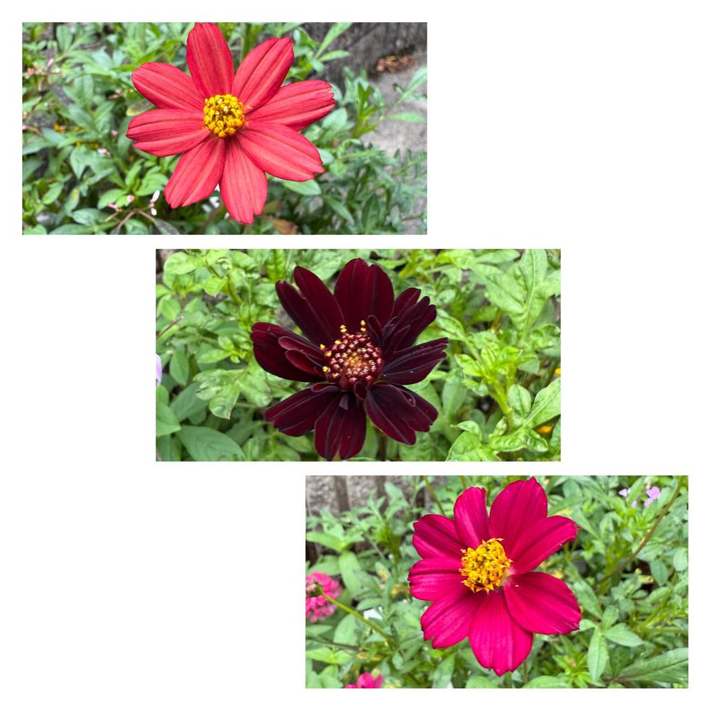 チョコレートコスモス3色共かわいいね🥰暑くても🥵元気に咲いてる健気やわ☺️ルドベキア💛うちも地植えのがあるけど恐ろしく繁殖するよ😱😆🤣