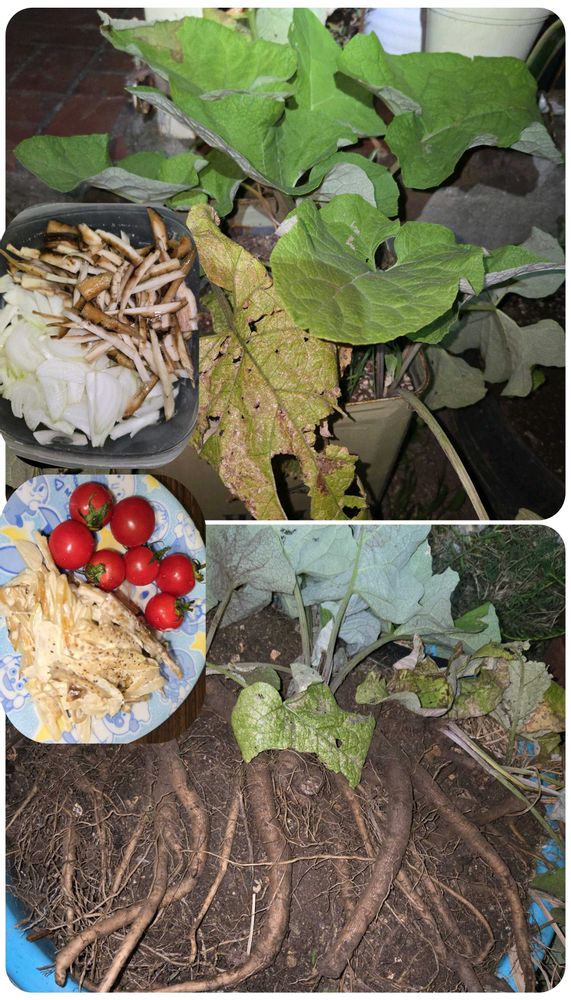 一斗缶で育てたじょうできごぼう、抜けないのでポキポキ折れて失敗(。´Д⊂)
