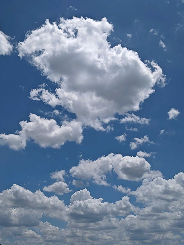 ここ最近の夏空。青く澄みわたった空に綿雲☁️☁️☁️。今日も最高気温36℃予報。暑さに負けず、頑張ろう。
