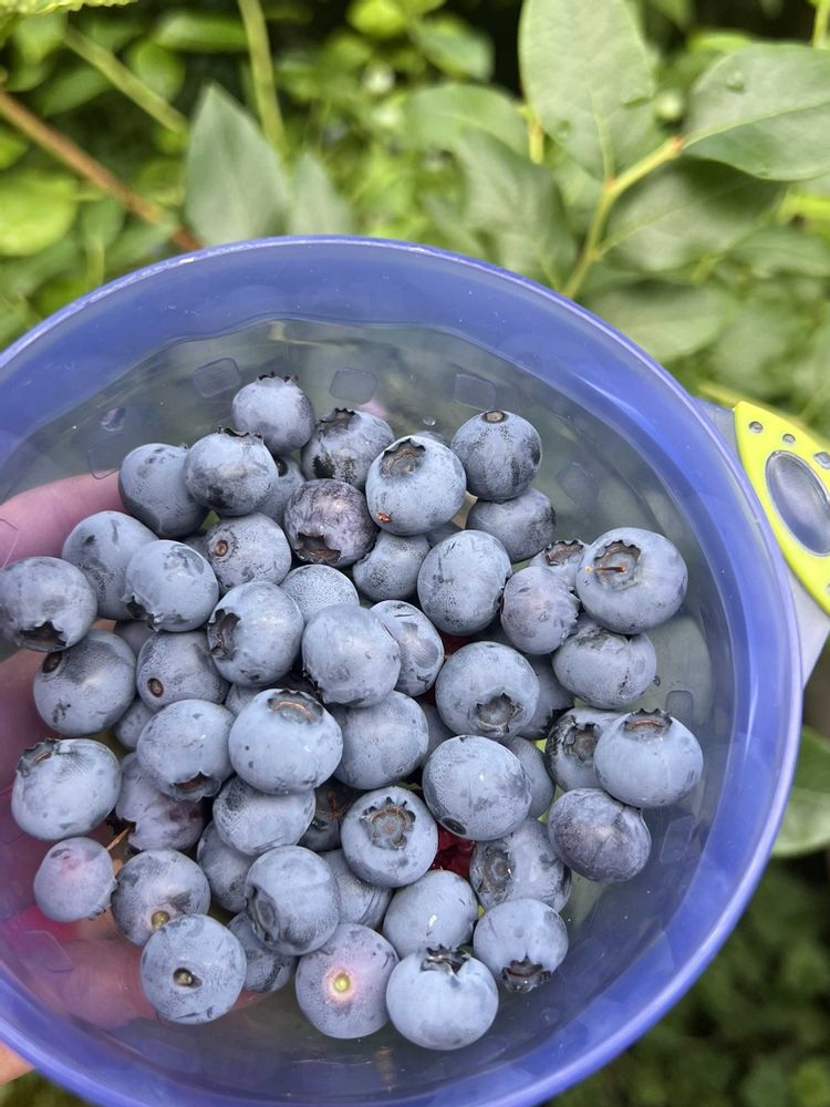 2年目のブルーベリーは思ったよりたくさん採れて子どもたちのおやつに。