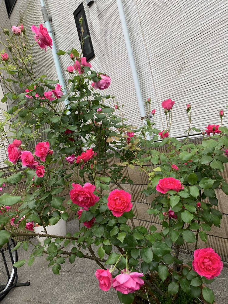 バラは10鉢位 バラばかり育てていらっしゃる方でいつも冬に短く剪定なさり、毎年同じ丈のバラになっていて 素晴らしいと思います。