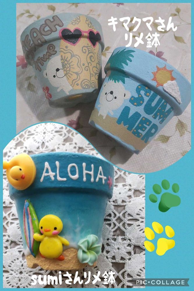 2枚目は、夏らしいリメ鉢、3種類。sumiさんとキマクマちゃんです。
