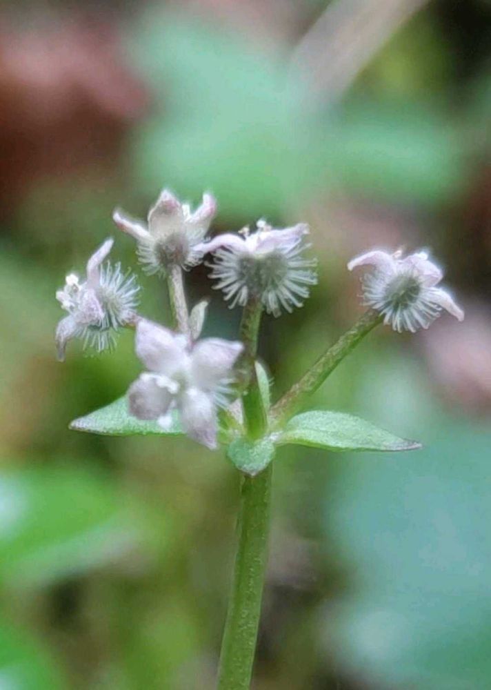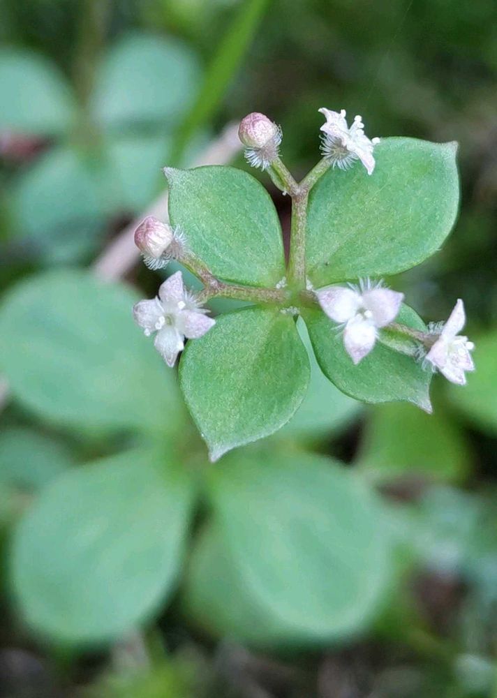 花径2.5〜3mmのとっても小さなお花、花冠は4裂し(3裂のものもありました)先が尖っていて、果実には長い白い毛が密集しています。4枚の葉が輪生していて段になっている姿も可愛いらしい🍀
