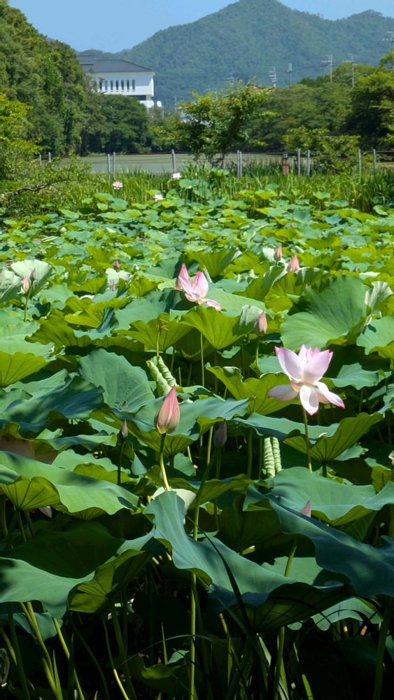 山が見える蓮池、素敵ですねー✨💍✨🎵