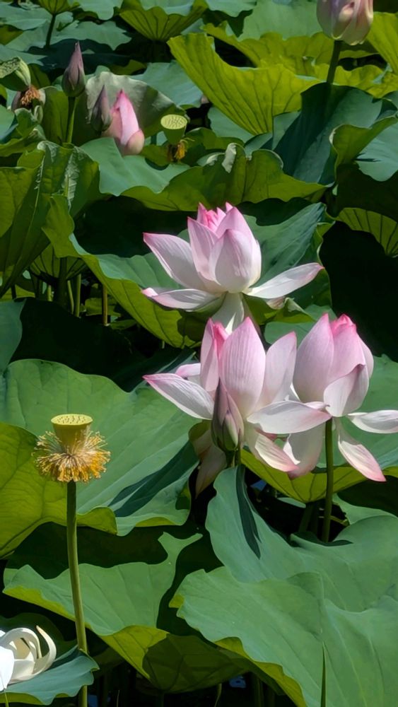 篠山城跡の南堀の篠山城蓮🩷 茎を切ってしまうアカミミガメを、地元の小学生たちも頑張って駆除した成果だヽ(^o^)丿